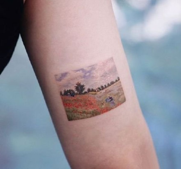 油画风格纹身 女生手臂上彩色的油画纹身图片