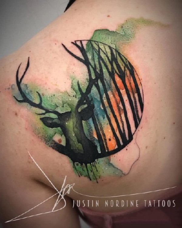 好看的一组9张彩色水墨纹身作品图案