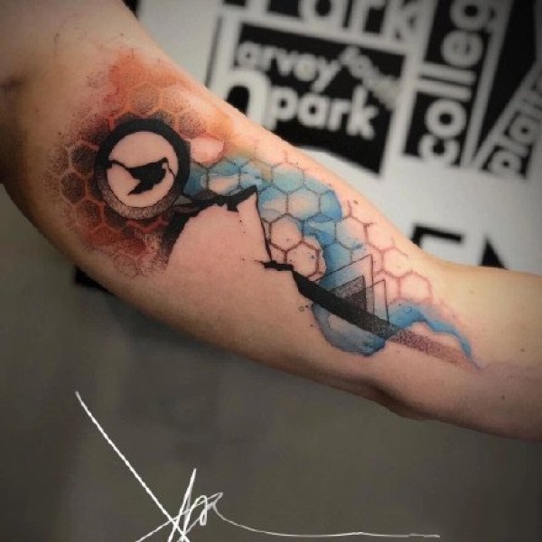 好看的一组9张彩色水墨纹身作品图案