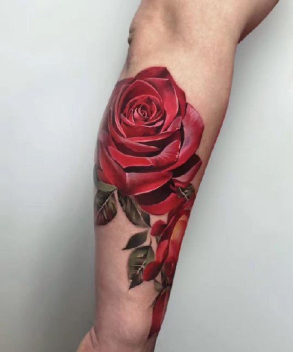 娇艳玫瑰手臂纹身_玫瑰花纹身图案大全_纹身图吧