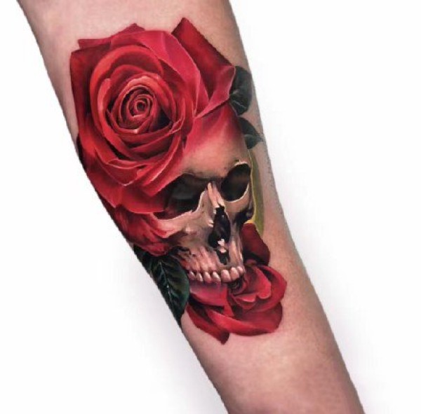 娇艳玫瑰手臂纹身_玫瑰花纹身图案大全_纹身图吧