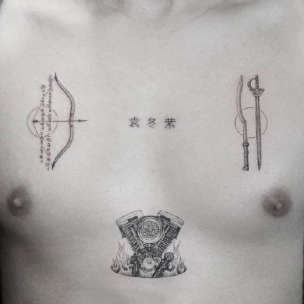 男性超简约水墨纹身图案