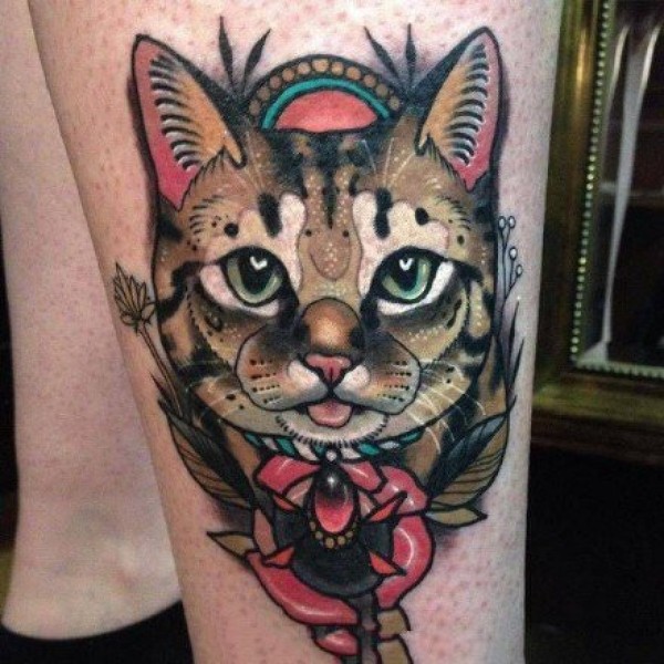 手背猫纹身:9张大花手背的猫纹身图案赏析