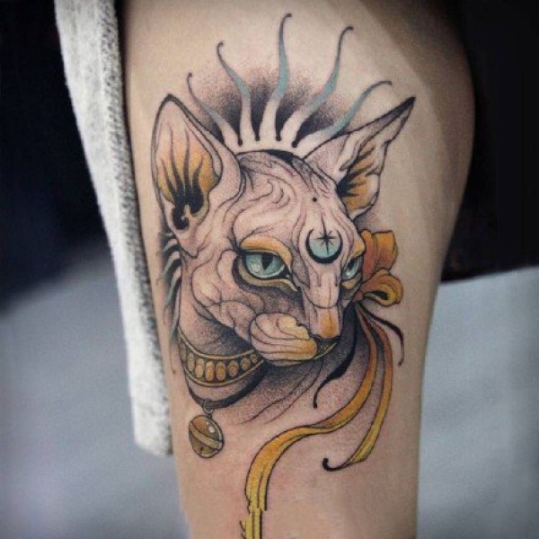 斯芬克斯猫的一组黑灰猫纹身图片