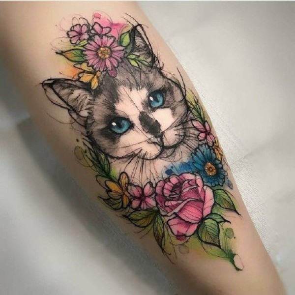 小清新猫纹身:狠可爱的一组小清新猫纹身图案