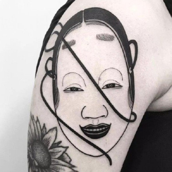日本风格的般若等人脸纹身作品