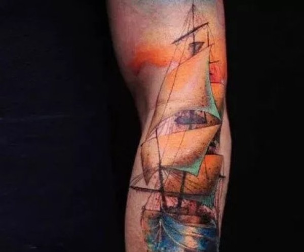 漂亮好看的帆船纹身手稿图案欣赏图片