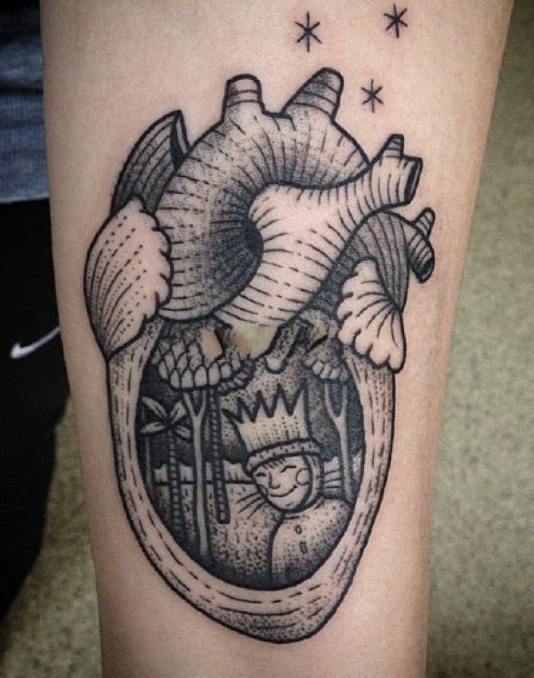 心脏纹身图案 男生手臂上心脏纹身黑色图案