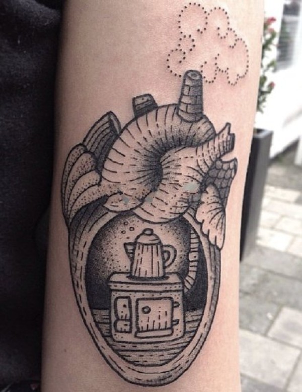 心脏纹身图案 女生手臂上黑灰纹身心脏纹身图案