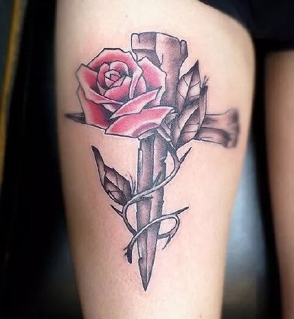 一款很立体的彩色十字架纹身图案_十字架纹身图案大全_纹身图吧