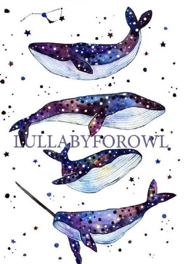 9张唯美的星空和鲸鱼搭配的纹身图案