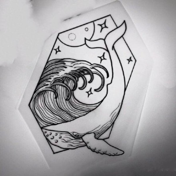 9张唯美的星空和鲸鱼搭配的纹身图案