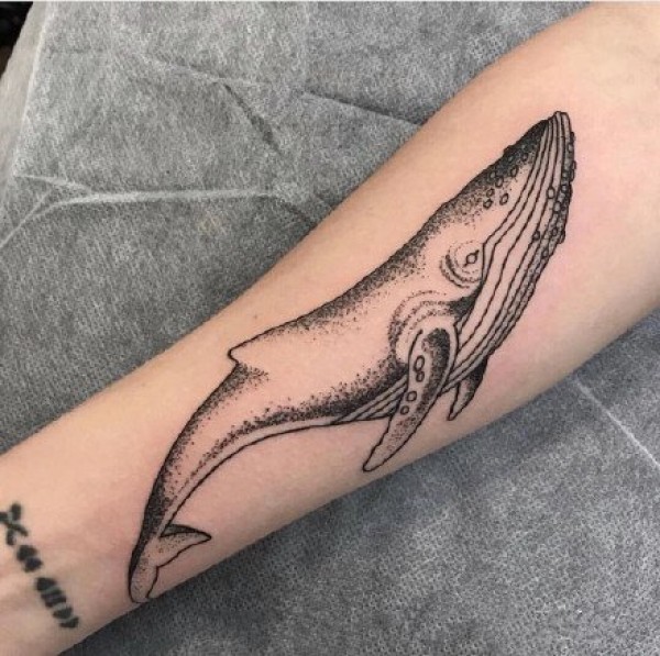 萌萌的鲸鱼纹身--适合女生的小清新鲸鱼纹身图案作品