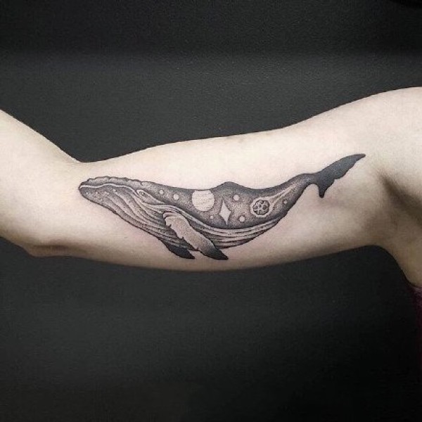 9张唯美的星空和鲸鱼搭配的纹身图案