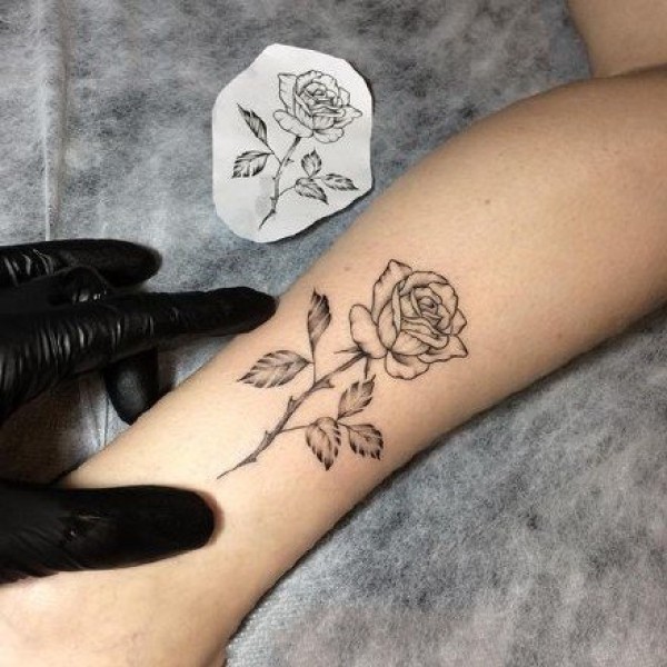 小腿玫瑰花纹身:9张小腿上漂亮的一组玫瑰花纹身图案