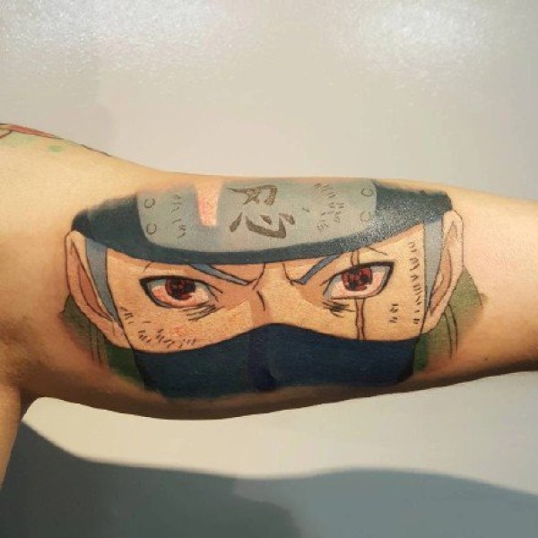手臂上的火影忍者鸣人佐助卡卡西等角色动漫纹身图案