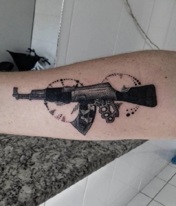 小手枪纹身 小黑色的9张手枪纹身图案欣赏