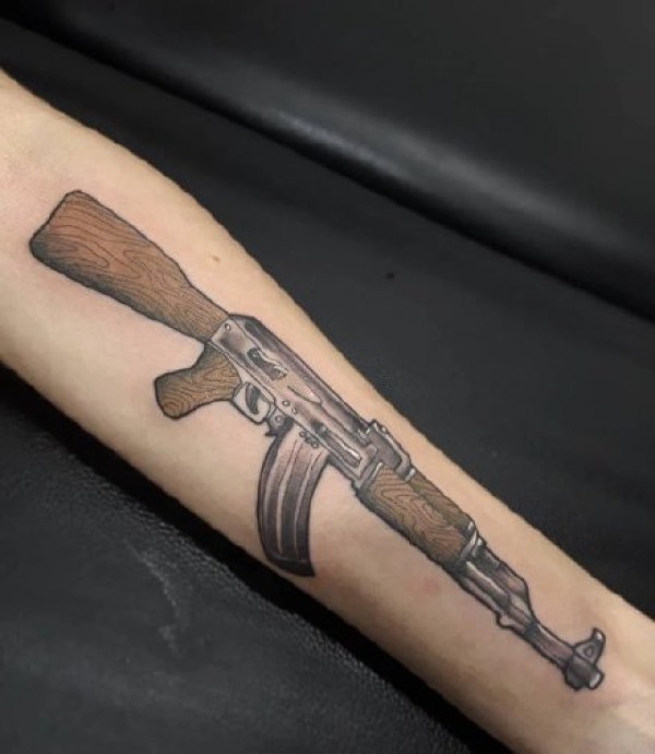 小臂手枪点刺黑灰纹身图案