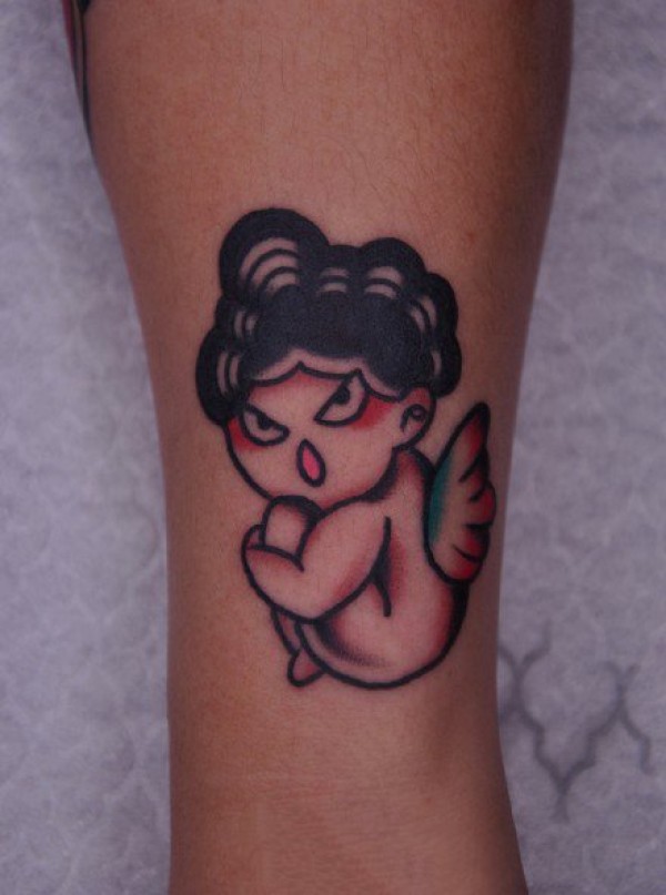 复古卡通红唇美女手臂纹身_卡通纹身图案大全_纹身图吧