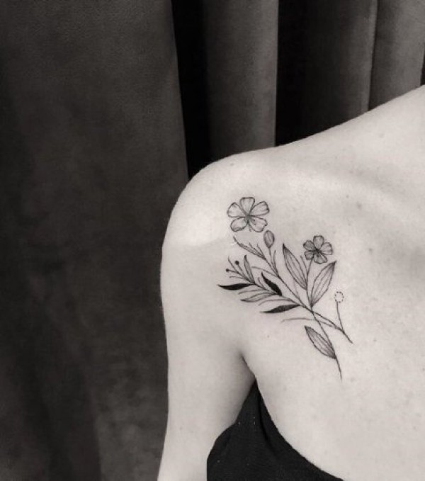大臂素花纹身 9款女士的大臂黑灰花朵植物纹身图案