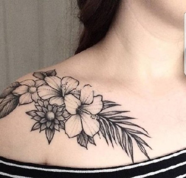 大臂素花纹身 9款女士的大臂黑灰花朵植物纹身图案