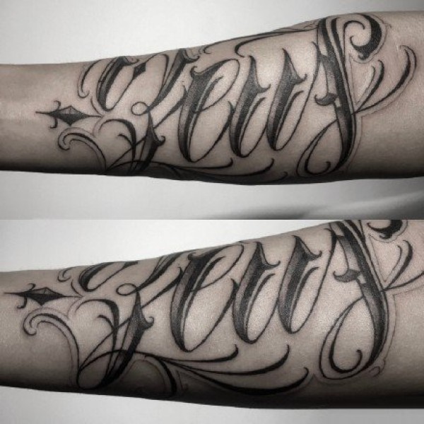小臂花体英文纹身 设计感十足的花体英文纹身图案