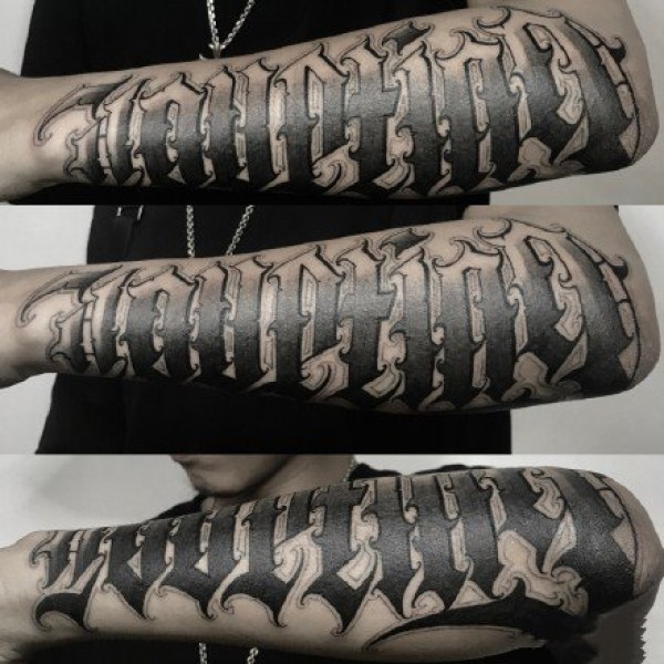 9张胳膊上很有个性的黑色英文花体字纹身图案