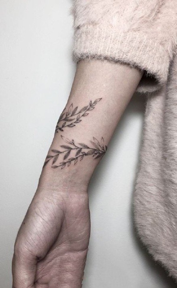 适合女孩子的植物藤蔓环绕手腕纹身