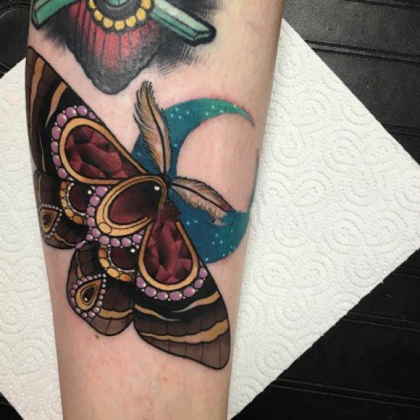 百乐动物纹身 女生手臂上彩色的飞蛾纹身图片