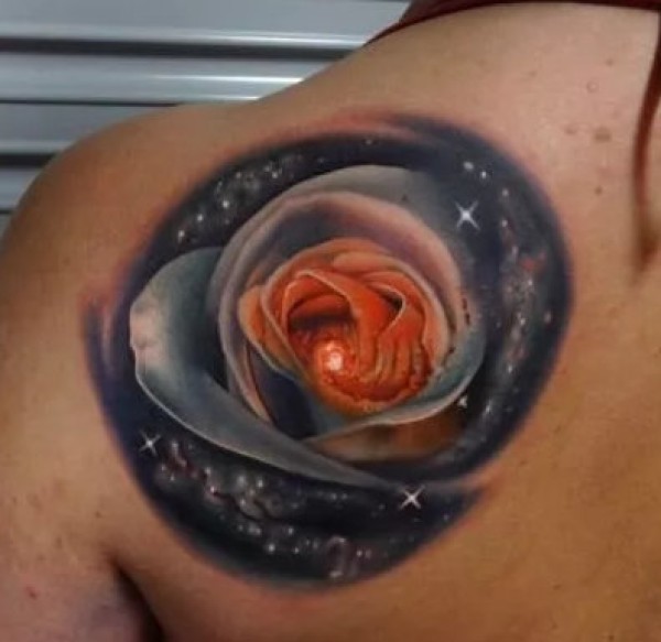 3D写实风格的玫瑰花朵纹身图片