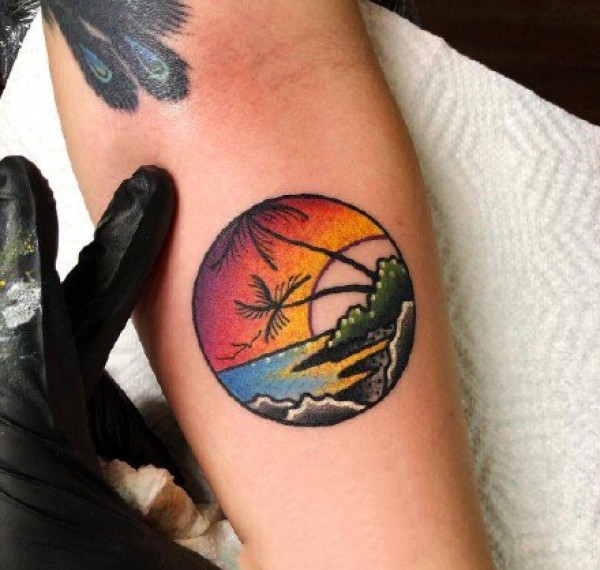 彩色风景纹身--一组几何图形+彩色的小风景纹身图案欣赏