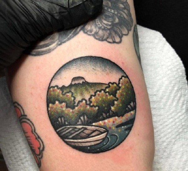 圆形风景纹身--几张几何圆形+风景纹身图案作品