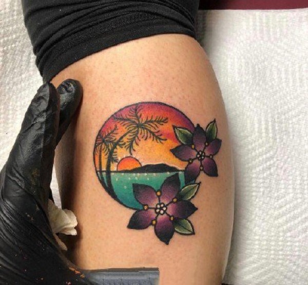 彩色风景纹身--一组几何图形+彩色的小风景纹身图案欣赏