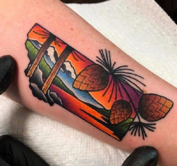 彩色风景纹身--一组几何图形+彩色的小风景纹身图案欣赏