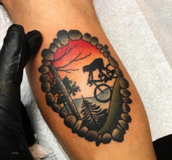 彩色风景纹身--一组几何图形+彩色的小风景纹身图案欣赏