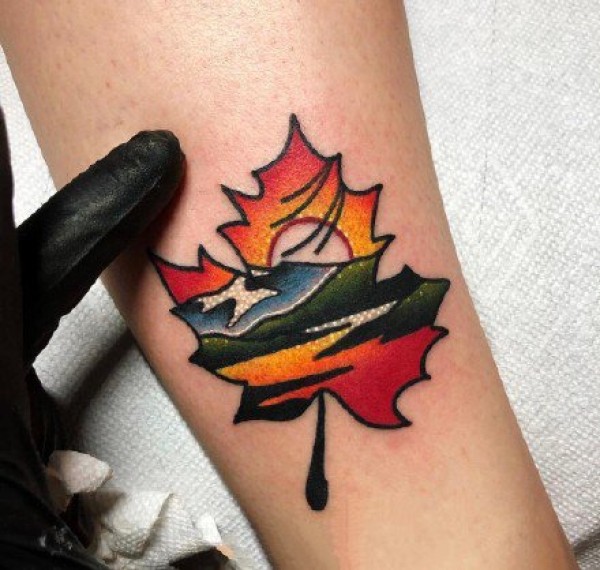 彩色风景纹身--一组几何图形+彩色的小风景纹身图案欣赏