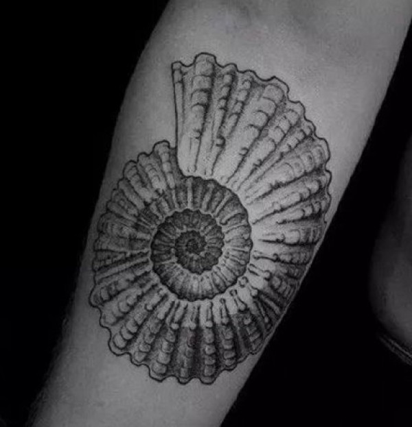 贝壳图案纹身 女生手臂上黑色纹身图片