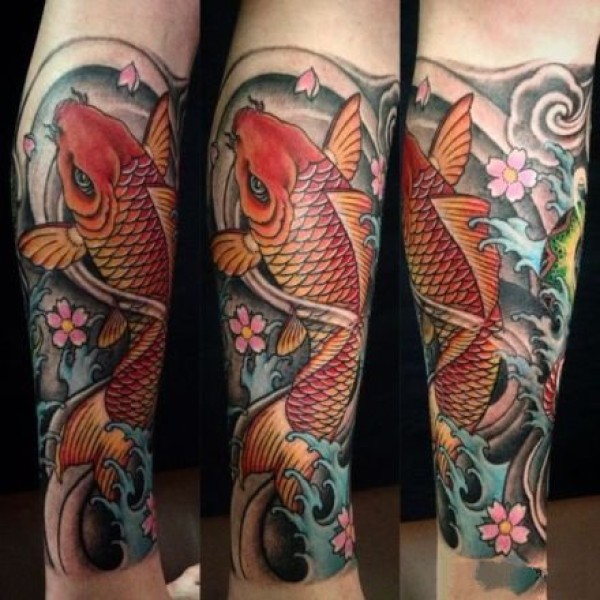 彩色小鲤鱼莲花纹身图案_鲤鱼纹身图案大全_纹身图吧