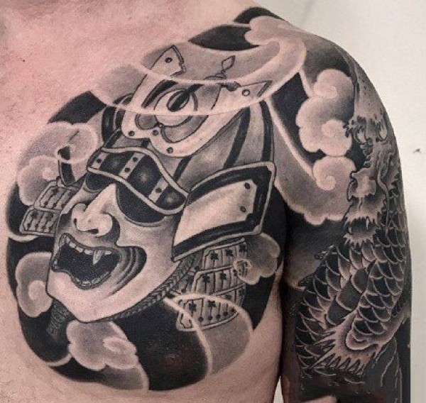 一幅潮流很酷的半甲佛头与象神纹身图片图片推_半甲纹身图案大全_纹身图吧