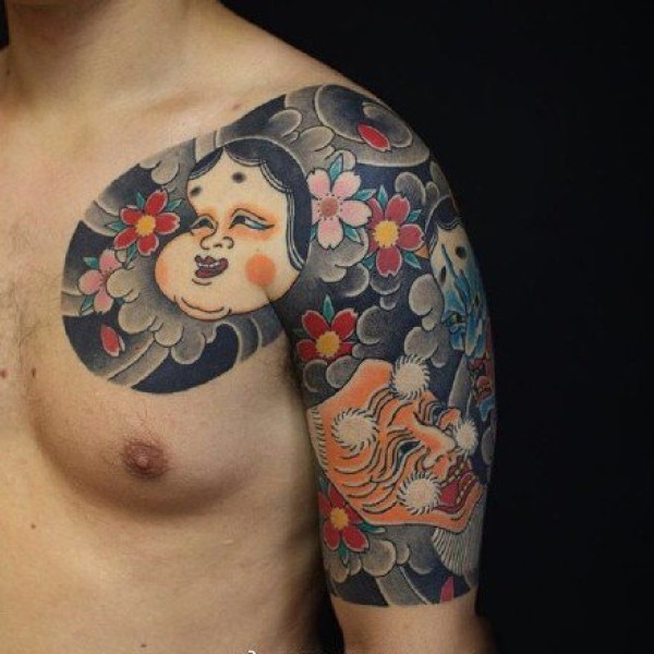 半甲纹身图片半甲观音神兽唐狮纹身图片纹身_半甲纹身图案大全_纹身图吧