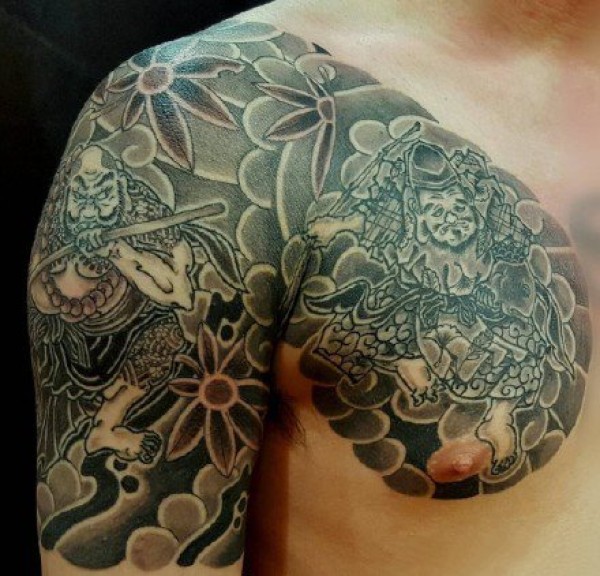 半甲纹身图片半甲观音神兽唐狮纹身图片纹身_半甲纹身图案大全_纹身图吧