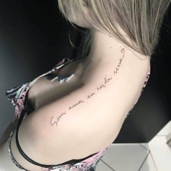 漂亮的女生肩部英文字母纹身图片