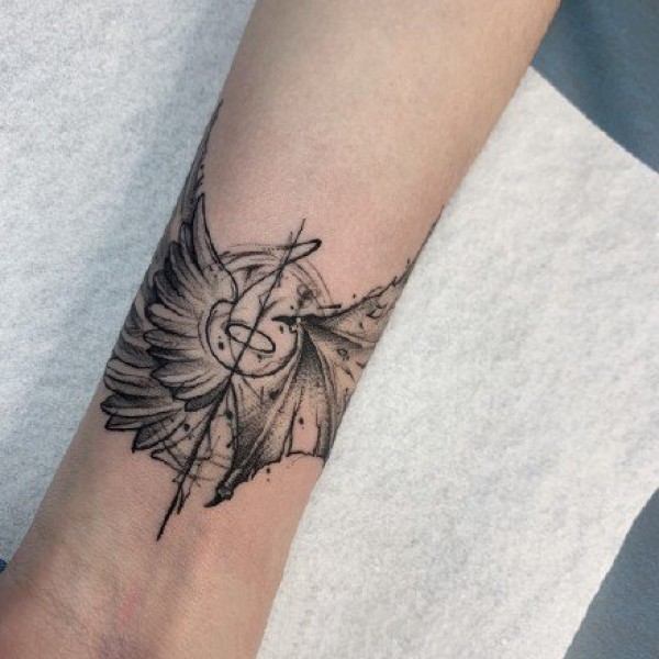 霸气翅膀:适合男性的一组霸气翅膀纹身图案9张