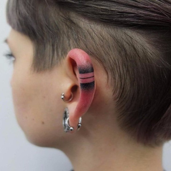 耳朵纹身--一组纹在耳朵里面的简约小清新纹身图案