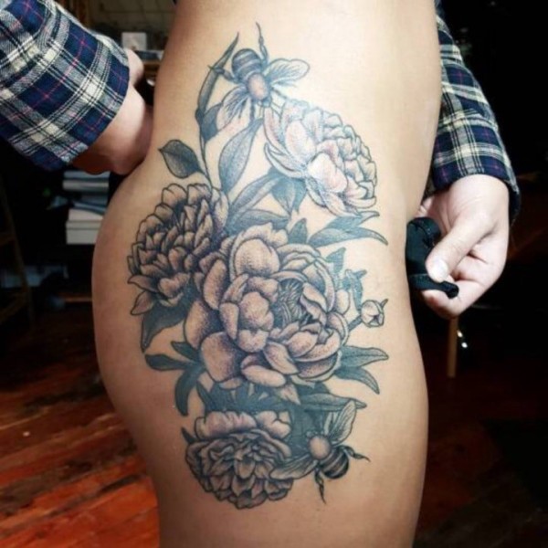 纹身黑白灰风格 身体各部位黑灰动植物纹身图片