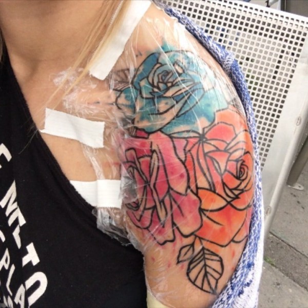 欧美玫瑰纹身 男生手臂上花朵纹身图片