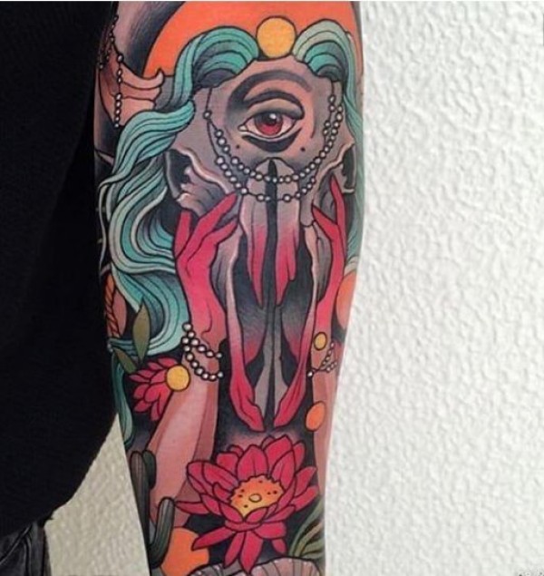 花朵纹身图案-20张身体各个部位传统彩绘纹身图案