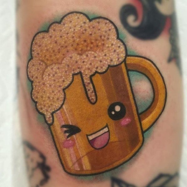 手臂啤酒彩色可爱纹身图片