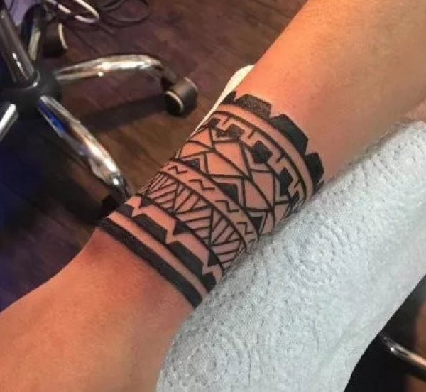 小臂手腕处很有民族风情的手环臂环纹身图案