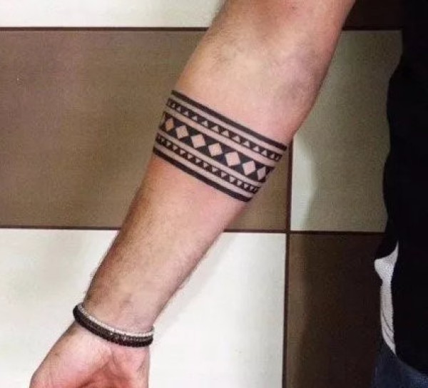 小臂手腕处很有民族风情的手环臂环纹身图案